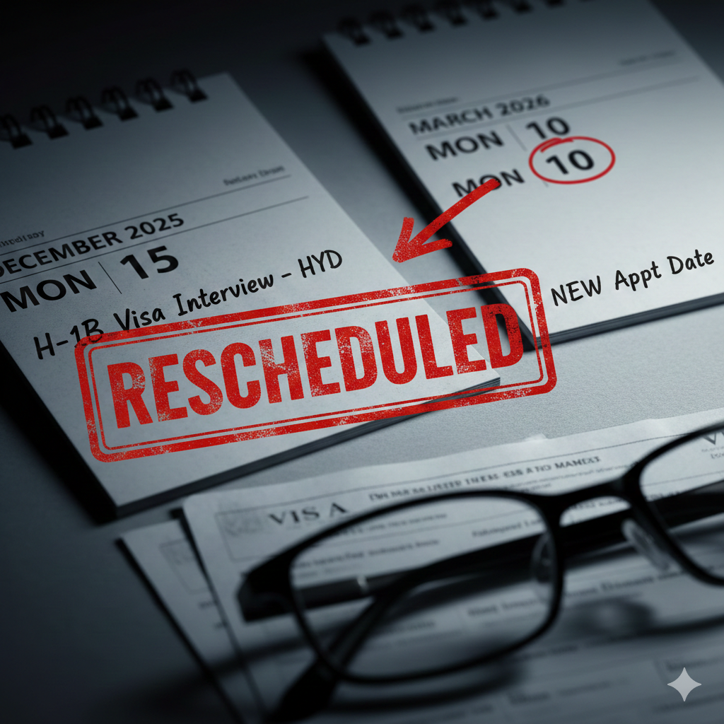 Beginning December 8, 2025, applicants with H-1B and H-4 visa interview appointments scheduled on or after December 15, 2025, started receiving notices that their appointments were being reassigned.